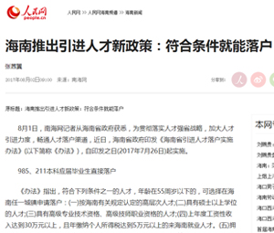 落户海南:立马享有特权